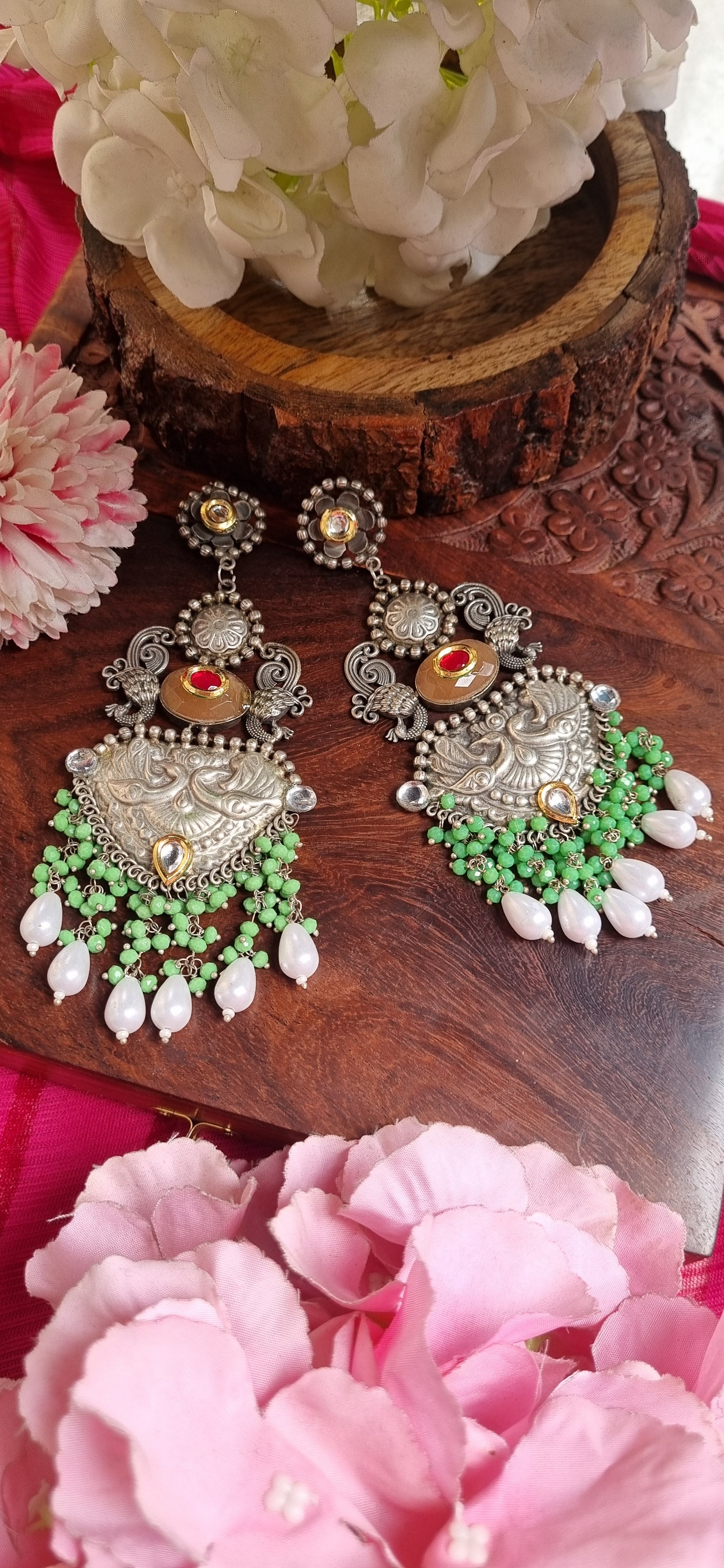 All our jewellery pieces are made in pure brass and oxidised mentioned in product description using materials like high quality monalisha stone, crystal beads ,real glass, original pachi kundan.
