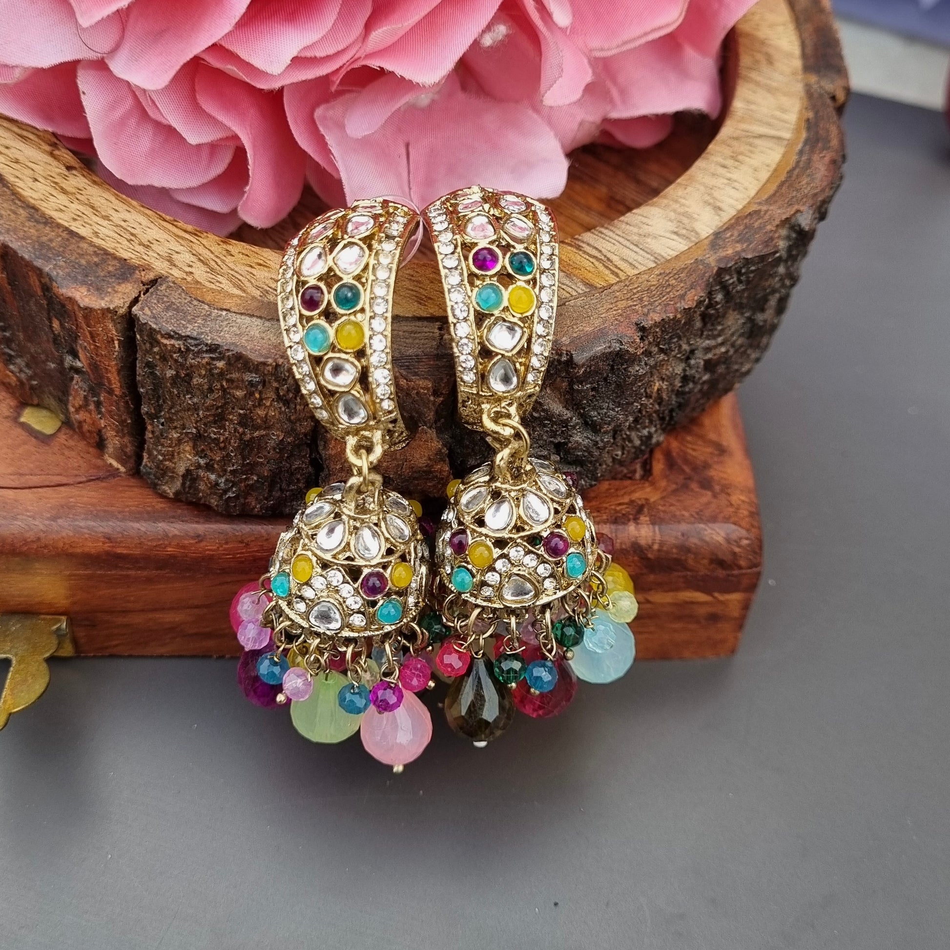All our jewellery pieces are made in pure brass and oxidised mentioned in product description using materials like high quality monalisha stone, crystal beads ,real glass, original pachi kundan.