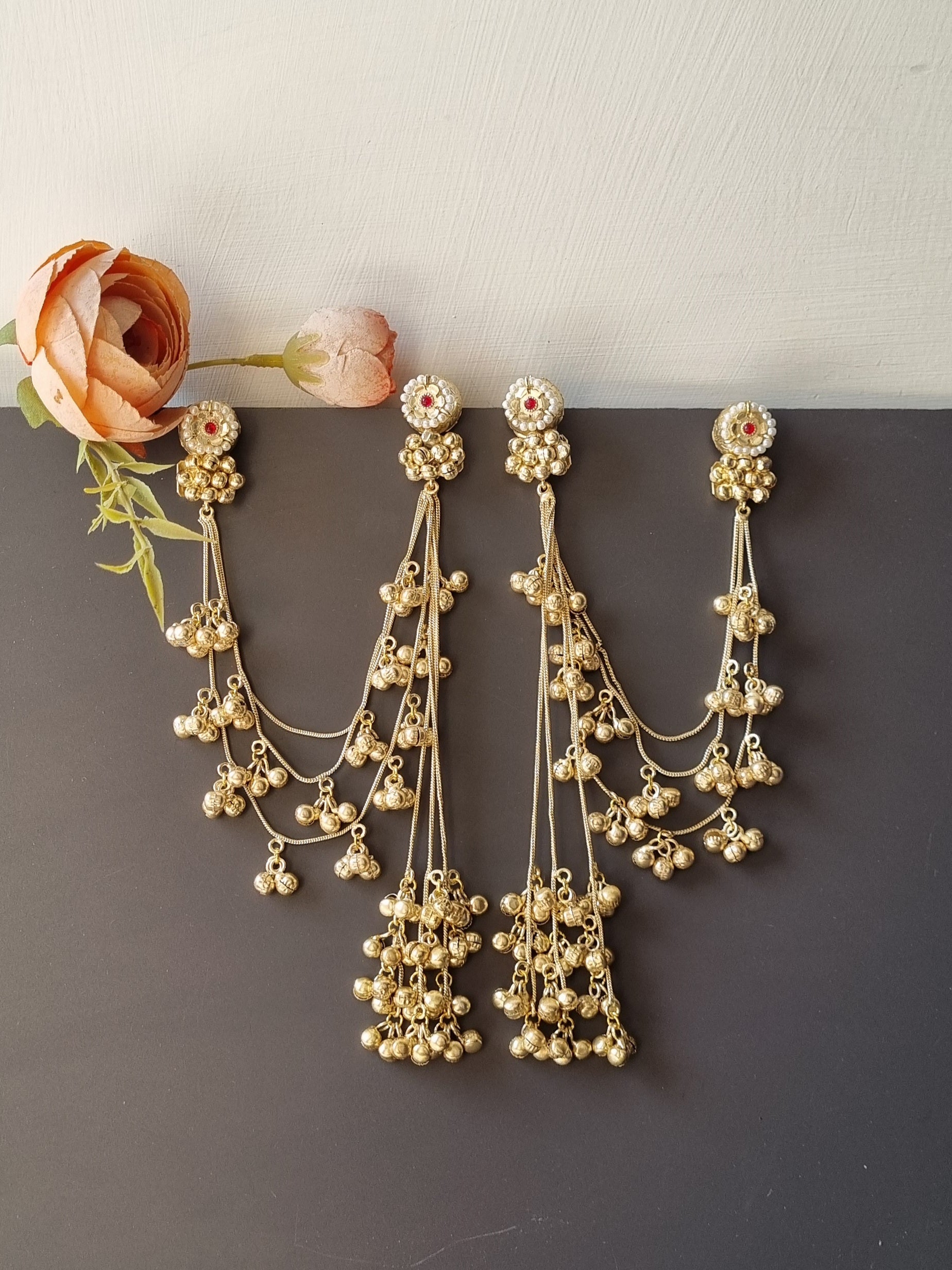 Sujata Golden Pachi Kundan Kashmiri Extension Earrings