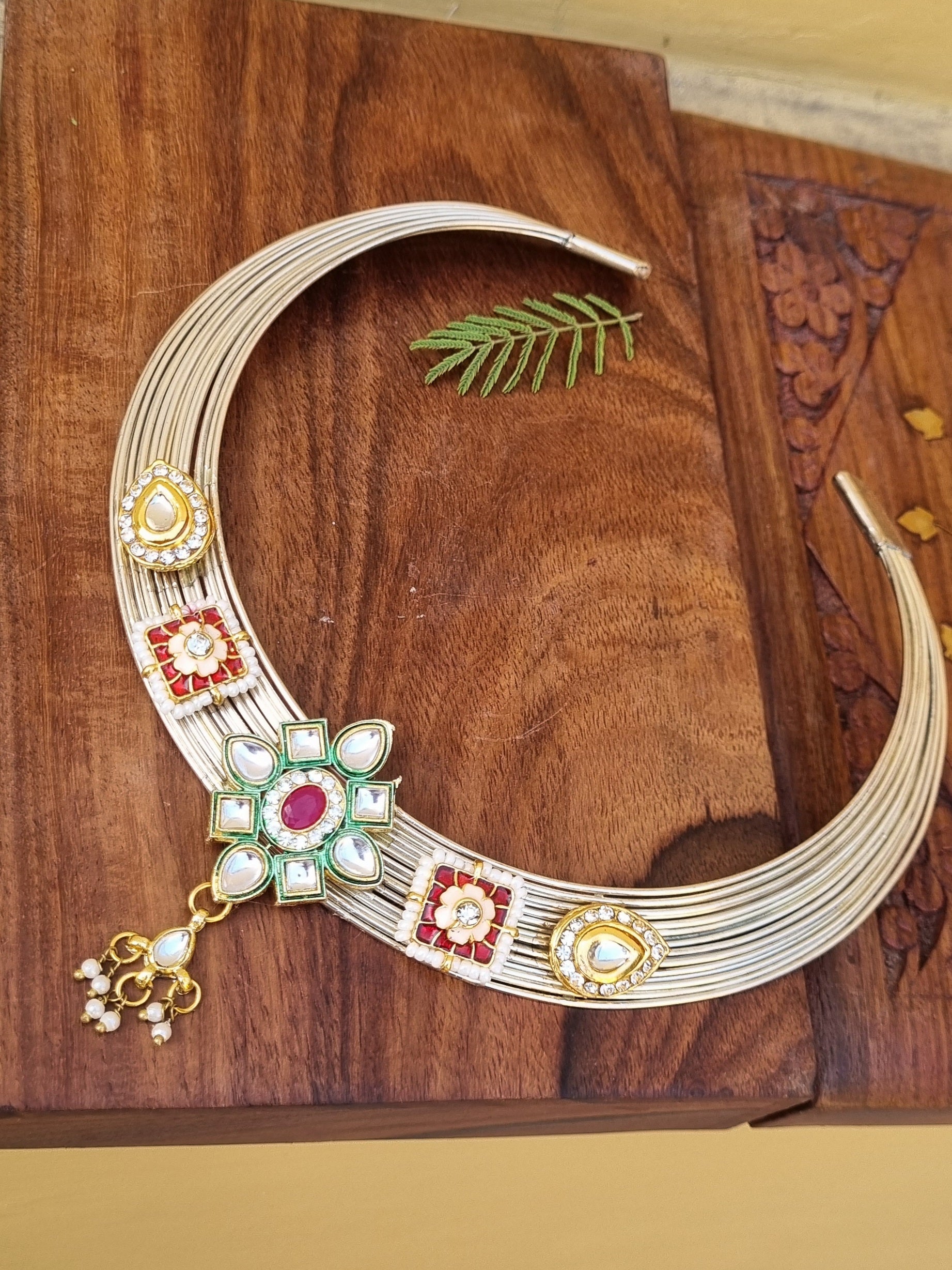 All our jewellery pieces are made in pure brass and oxidised mentioned in product description using materials like high quality monalisha stone, crystal beads ,real glass, original pachi kundan.