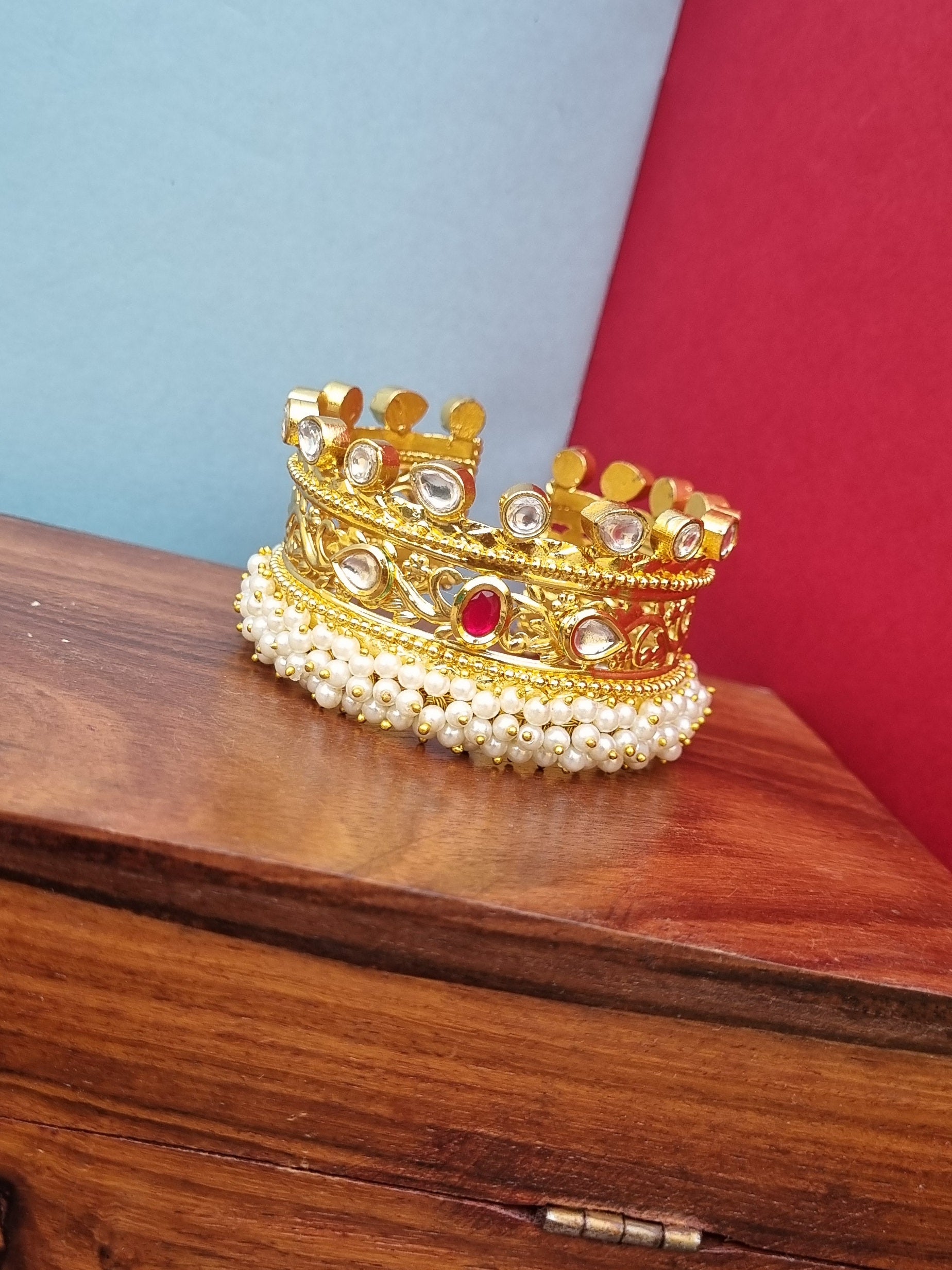 All our jewellery pieces are made in pure brass and oxidised mentioned in product description using materials like high quality monalisha stone, crystal beads ,real glass, original pachi kundan.