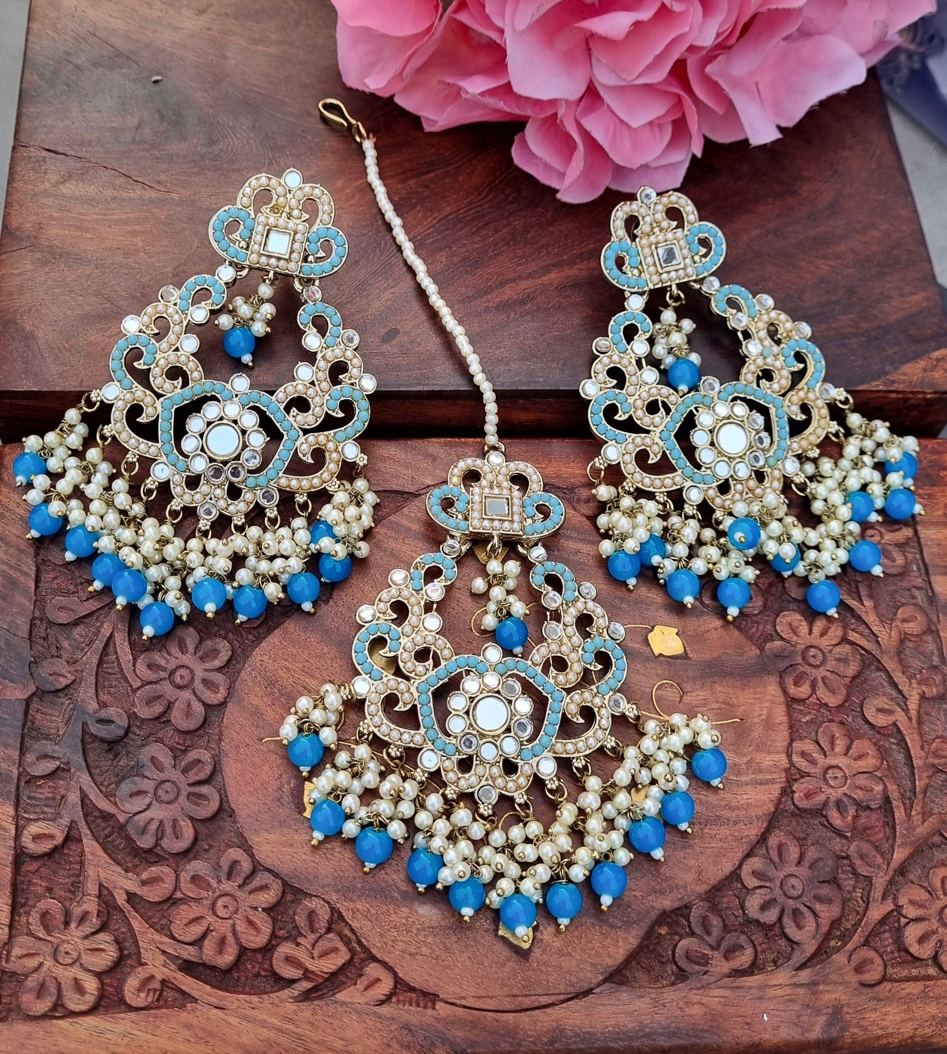 Imaan mirror Chandbalis with maangtika - Blue