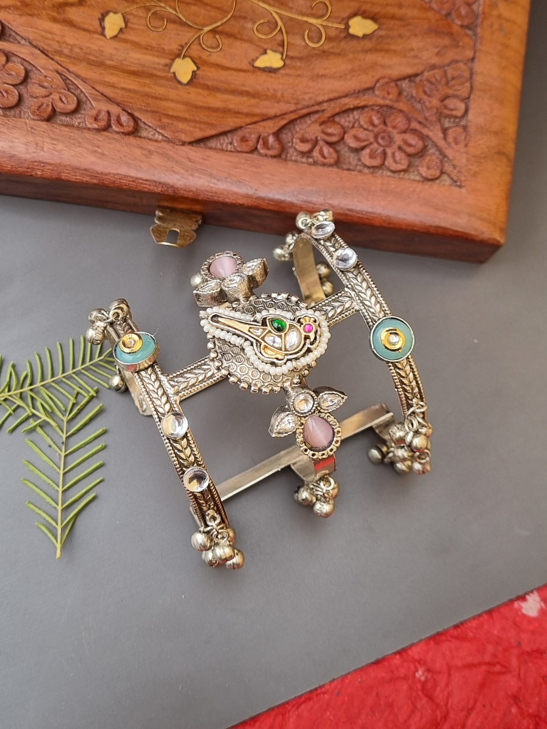 Mahnoor Silver Pachi Statement Brass Handcuff/Kada