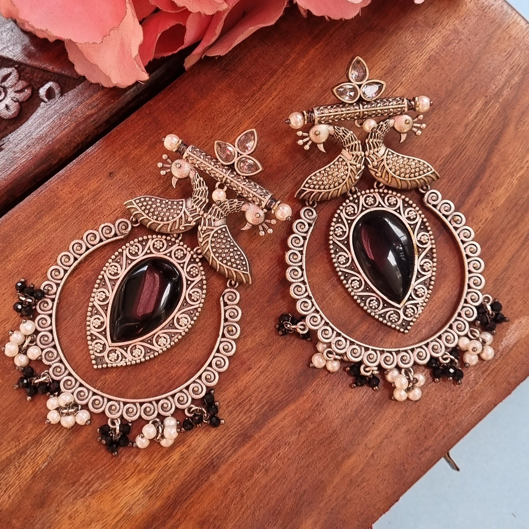 Peacock Brass Earrings - BLACK